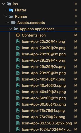 5-2. ios - Runner - Assets.xcassets - Applcon.appiconset 폴더로 이동 해주세요